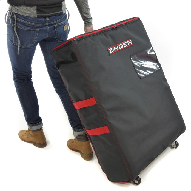 La funda dispone de unas aberturas hechas específicamente para que las ruedas antivuelco salgan por el extremo. De esta forma, podrá llevar su Zinger cómodamente como si fuese un carrito por grandes superficies como aeropuertos u hoteles.