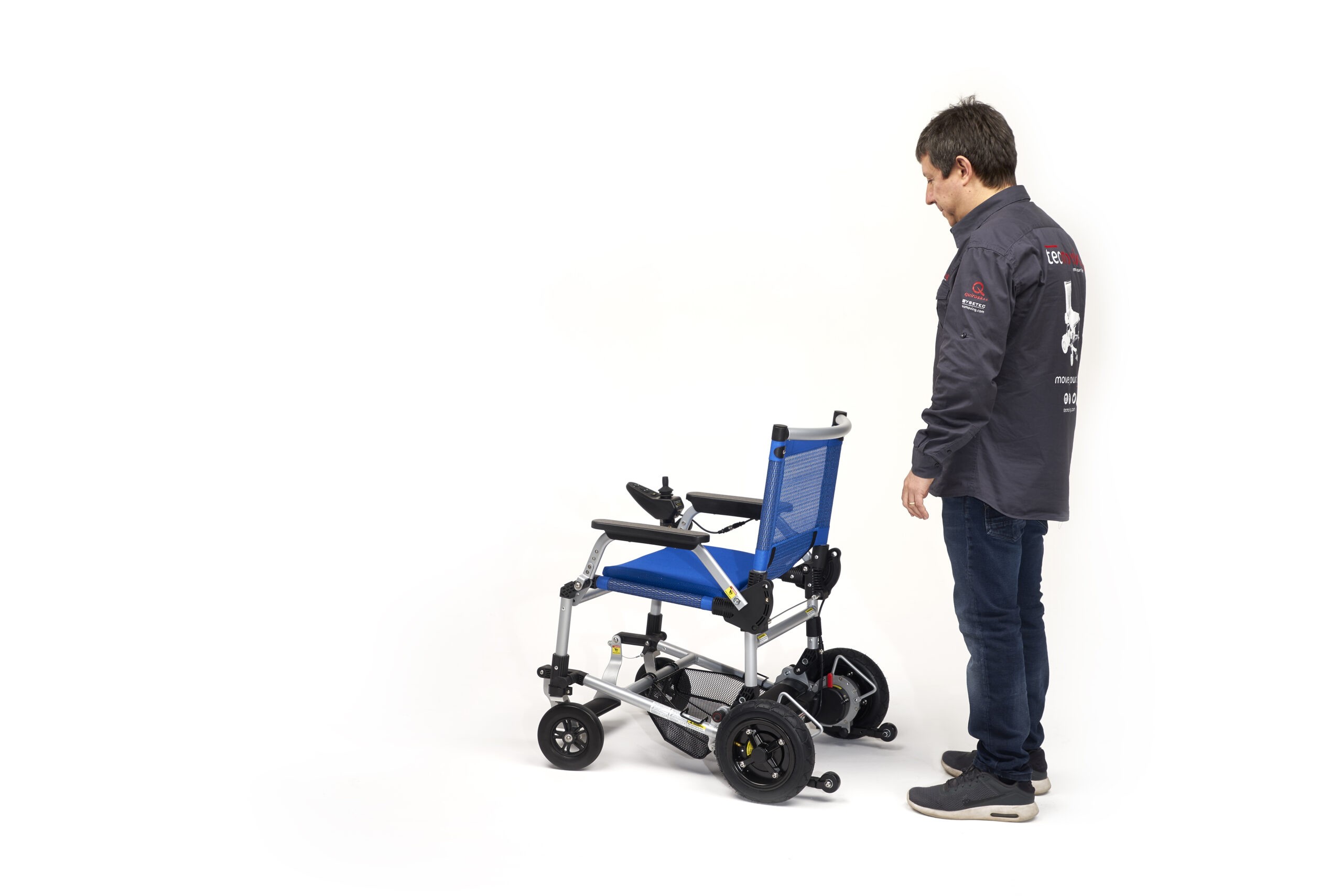 Y si no te apetece desmontarla, simplemente la pliegas, ya que comparte con la silla eléctrica Joytec el innovador diseño ultraligero y su sistema de plegado instantáneo, añadiéndole la conducción mediante joystick y la seguridad del freno electromagnético.